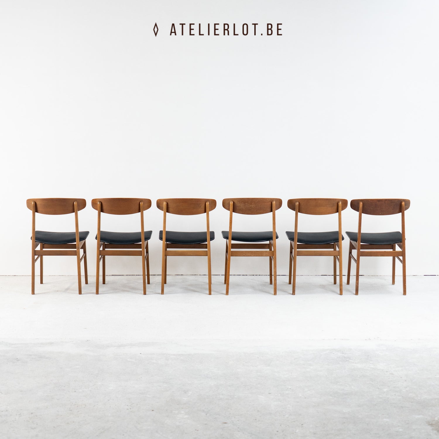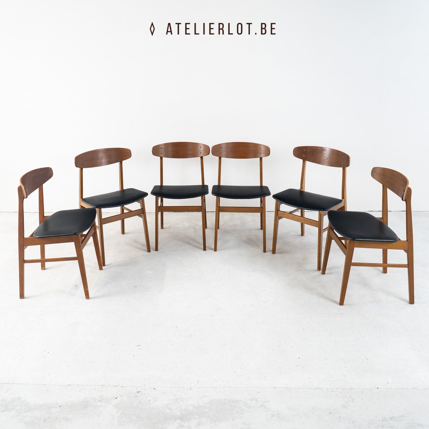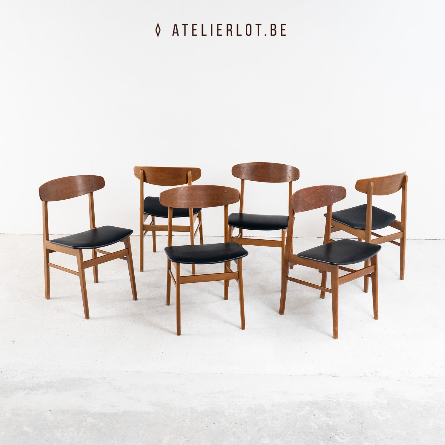 Stijlvolle Deense designklassiekers uit de jaren ’60. Deze stoelen van Sax Denmark zijn uitgevoerd in warm teak en afgewerkt met een zwarte skai bekleding. Het elegante ontwerp wordt gekenmerkt een ovaalvormige rugleuning, dat zorgt voor een luchtige, tijdloze uitstraling.