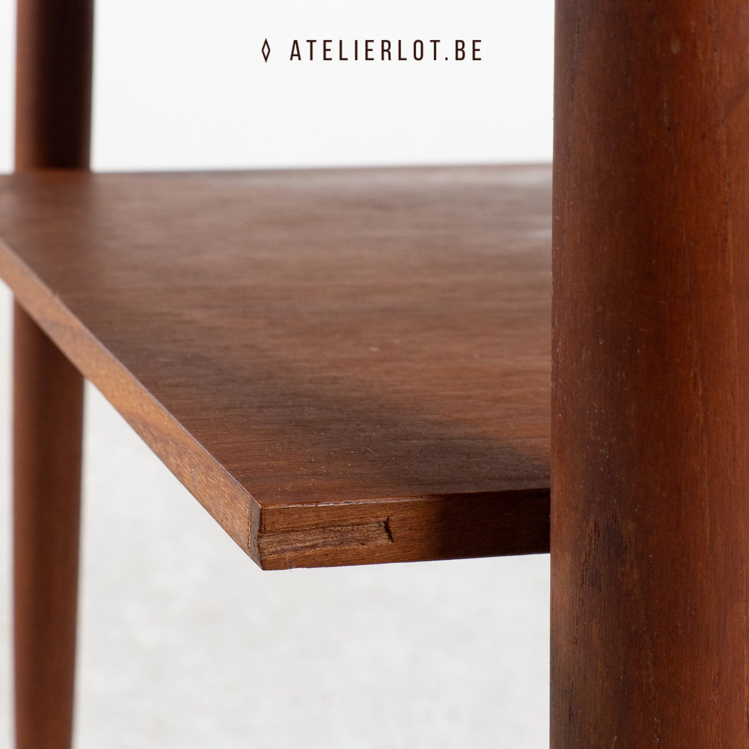 Vintage salontafel in teak uit Denemarken uit de jaren '60. De tafel heeft een tweede niveau voor extra opbergruimte. Het meubel verkeert in een goede vintage staat.