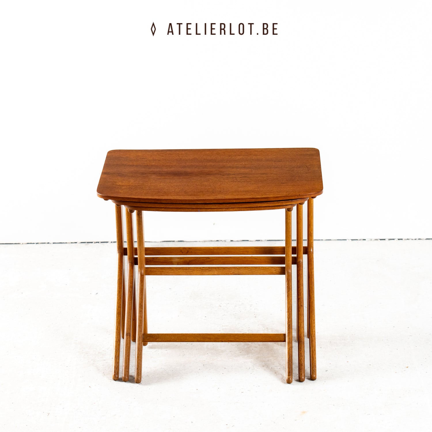Set van drie vintage Deense teakhouten nesttafels uit de jaren '60. Dit verfijnde ontwerp valt op door het karakteristieke, organische frame. Het hoogwaardige vakmanschap en de strakke vormgeving doen sterk denken aan het werk van Erling Torvits voor Heltborg Møbler. Een tijdloze, ruimtebesparende set die de essentie van Deens modernisme perfect weergeeft. De set verkeert in een zeer goede staat.