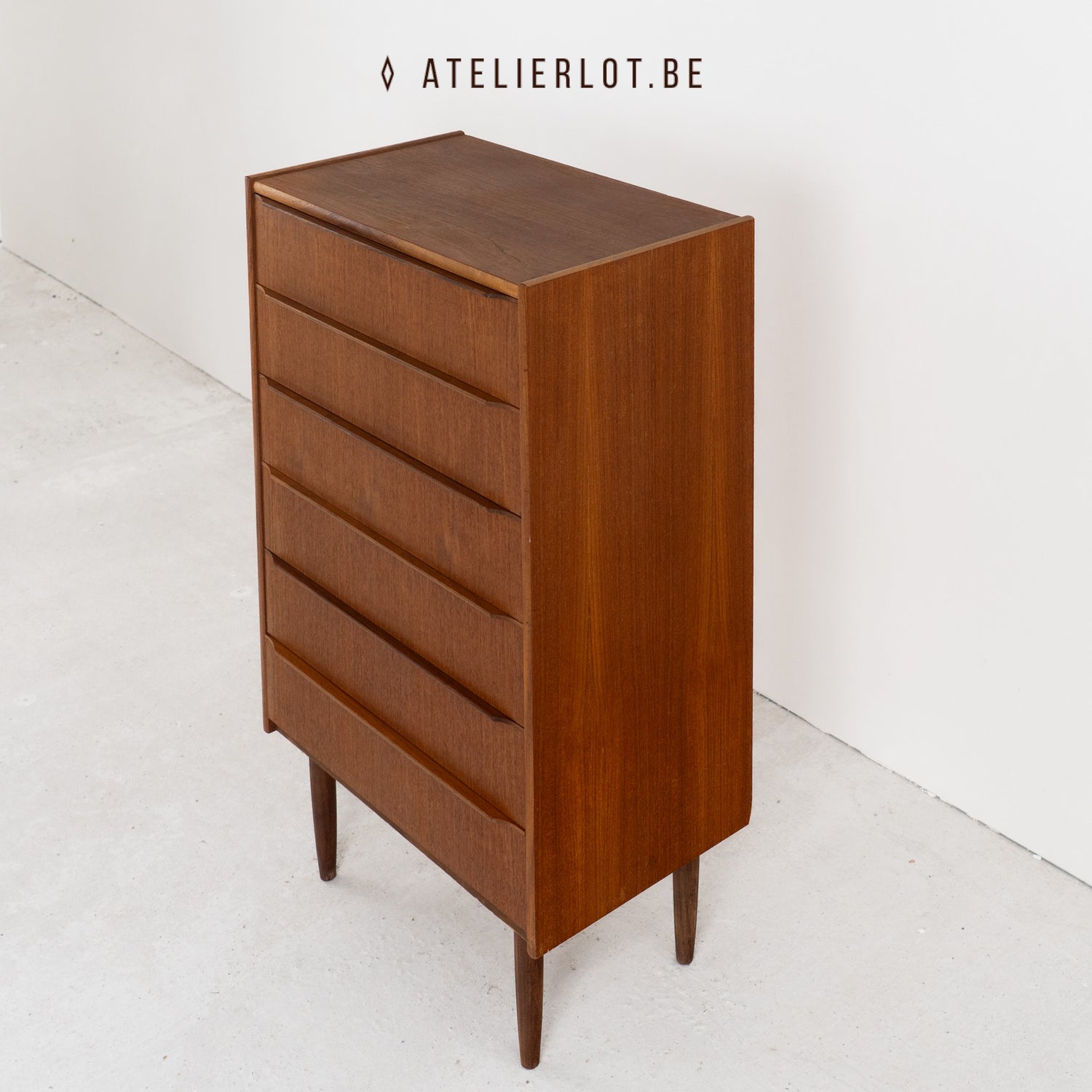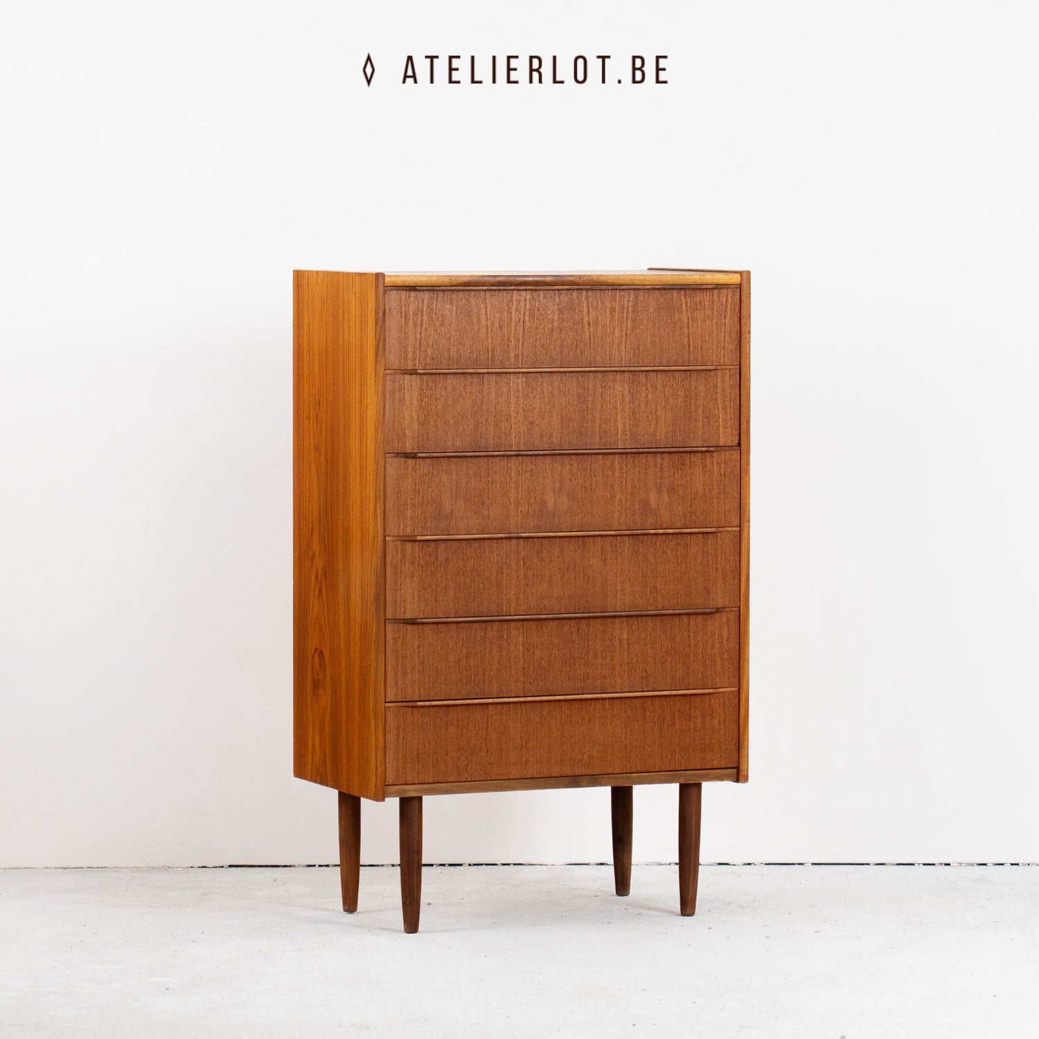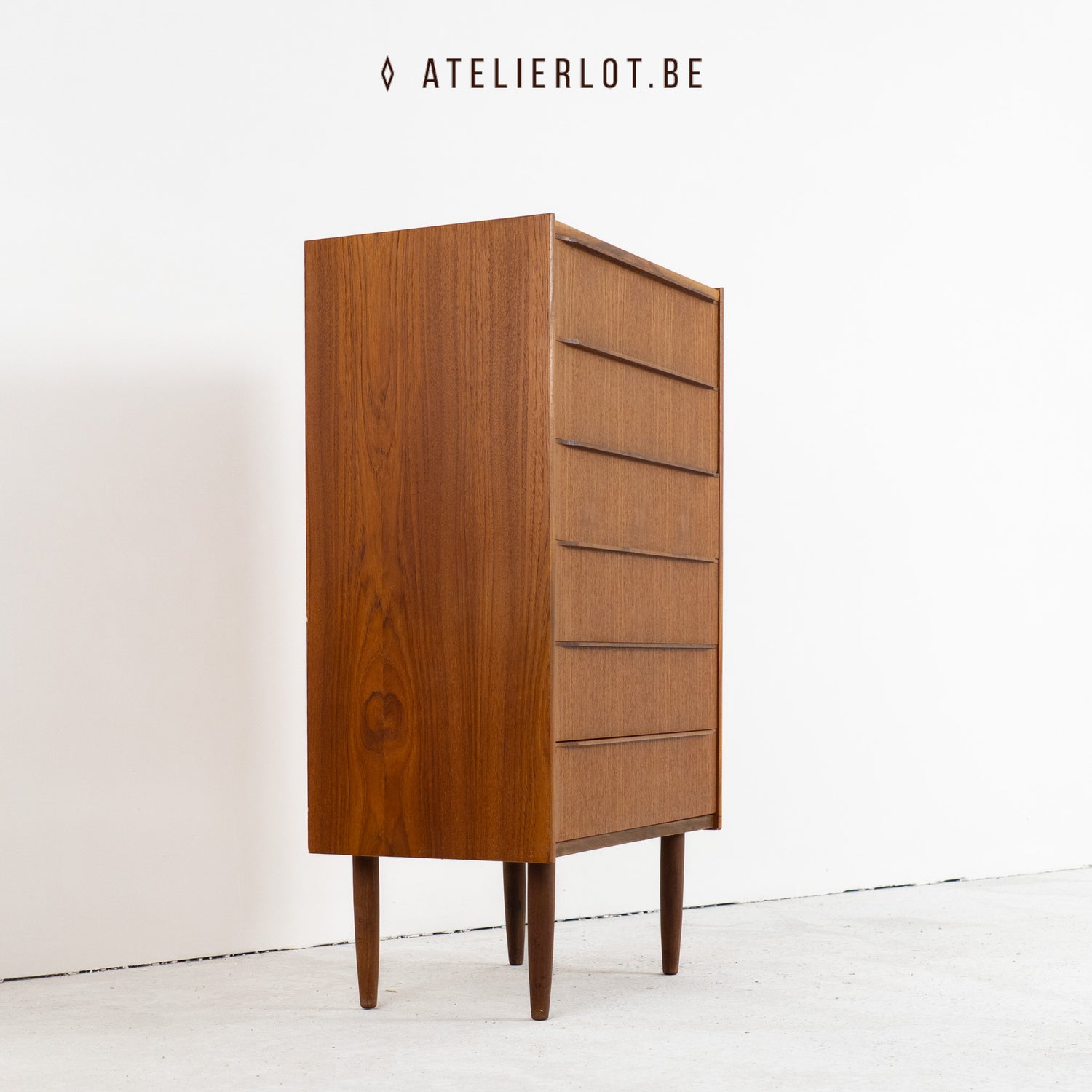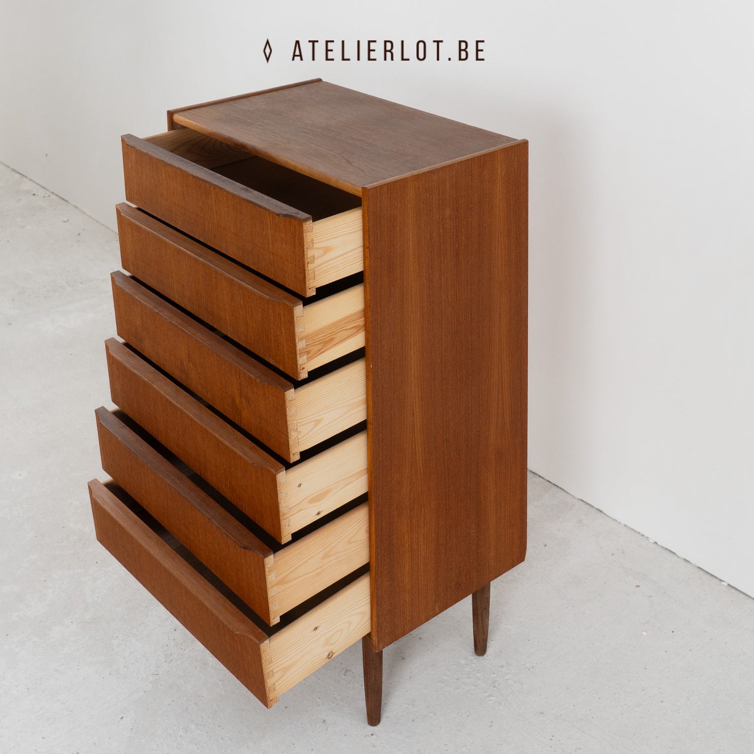 Vintage ladekast met 6 laden onder elkaar. Het meubel verkeert in een goede staat.